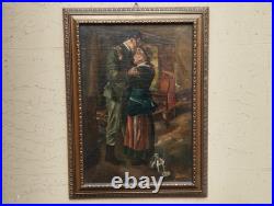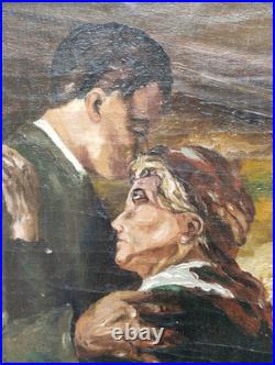 Antique Carré Peinture Huile sur Toile L’Enterrement R. A. Sarda de G. Berger